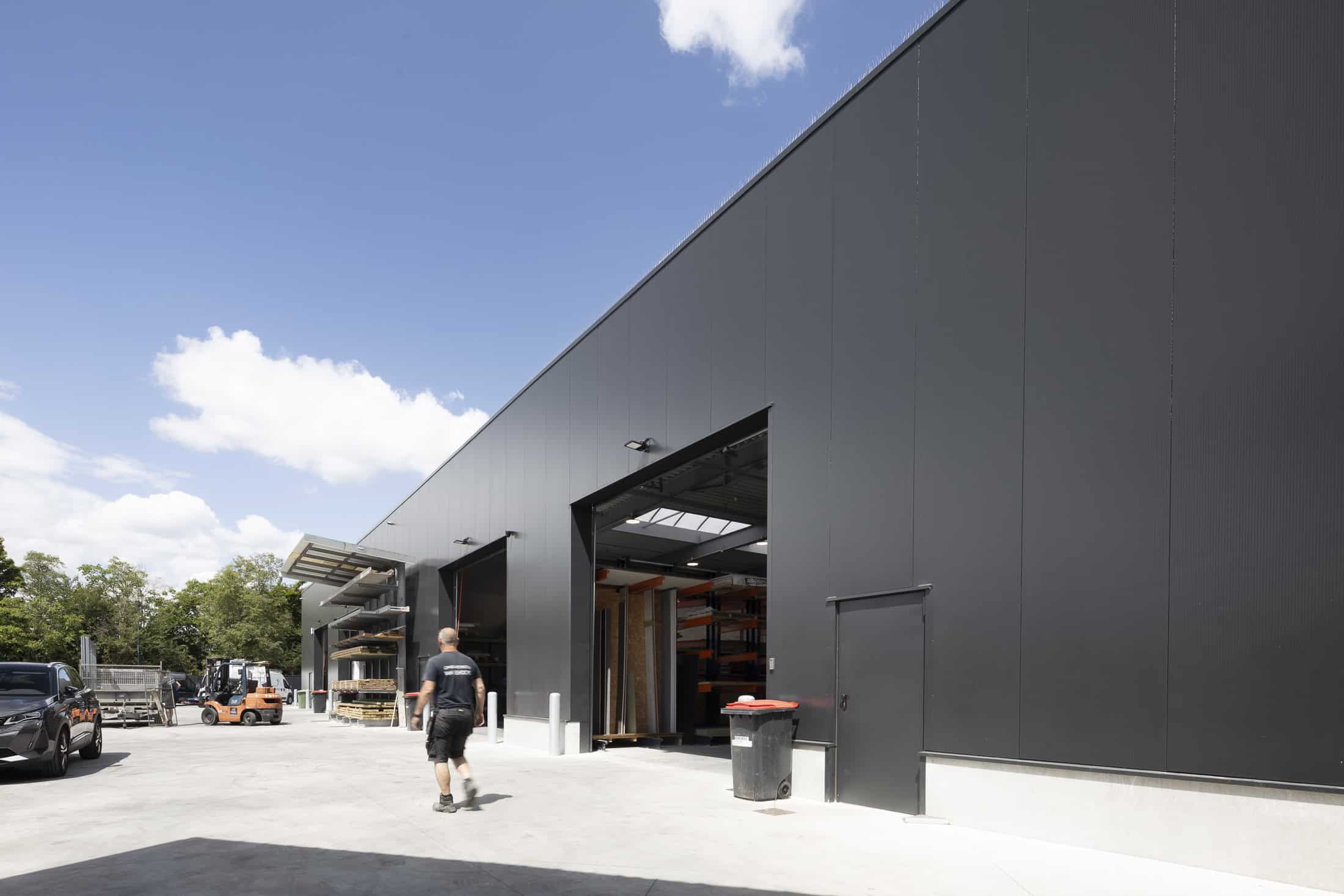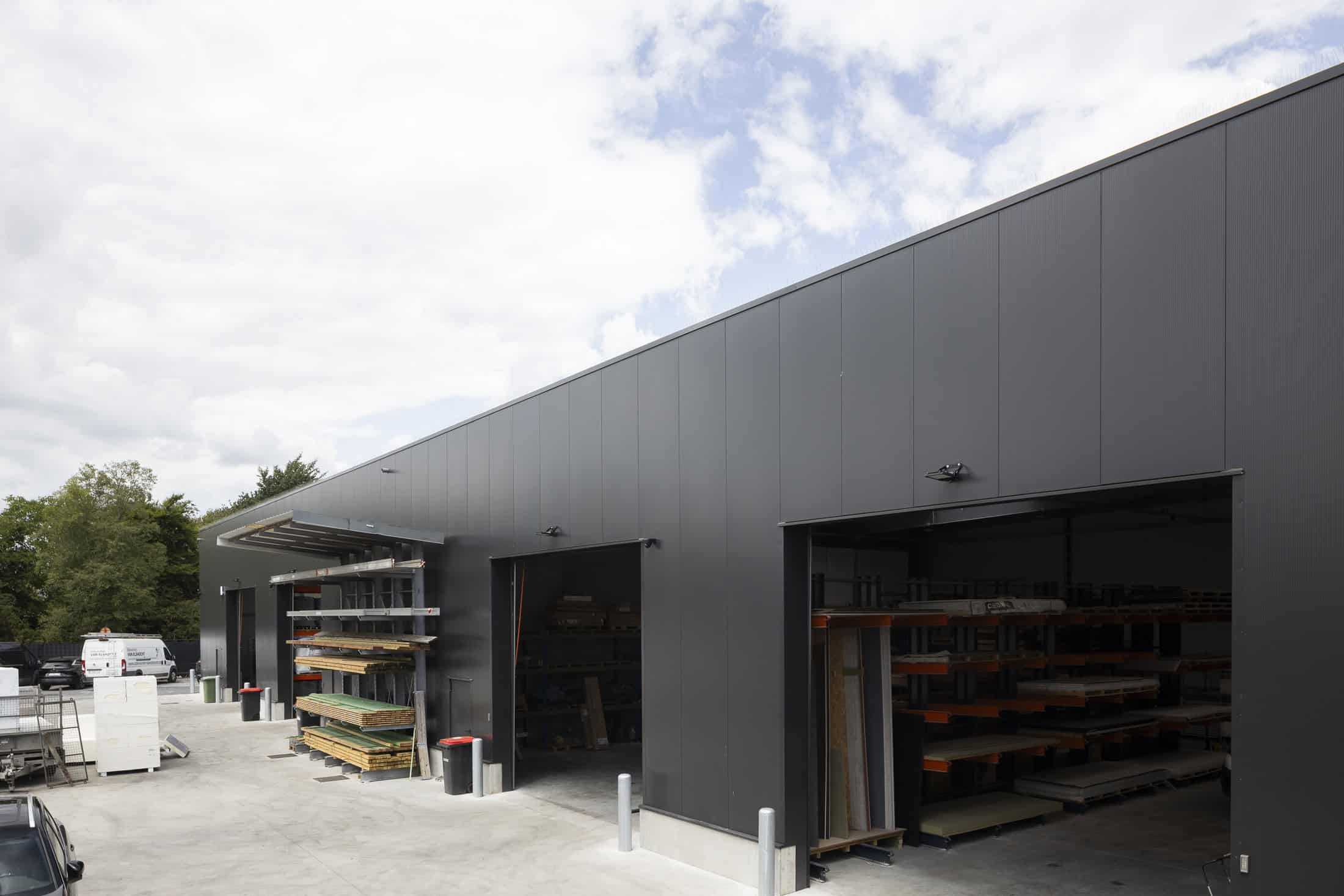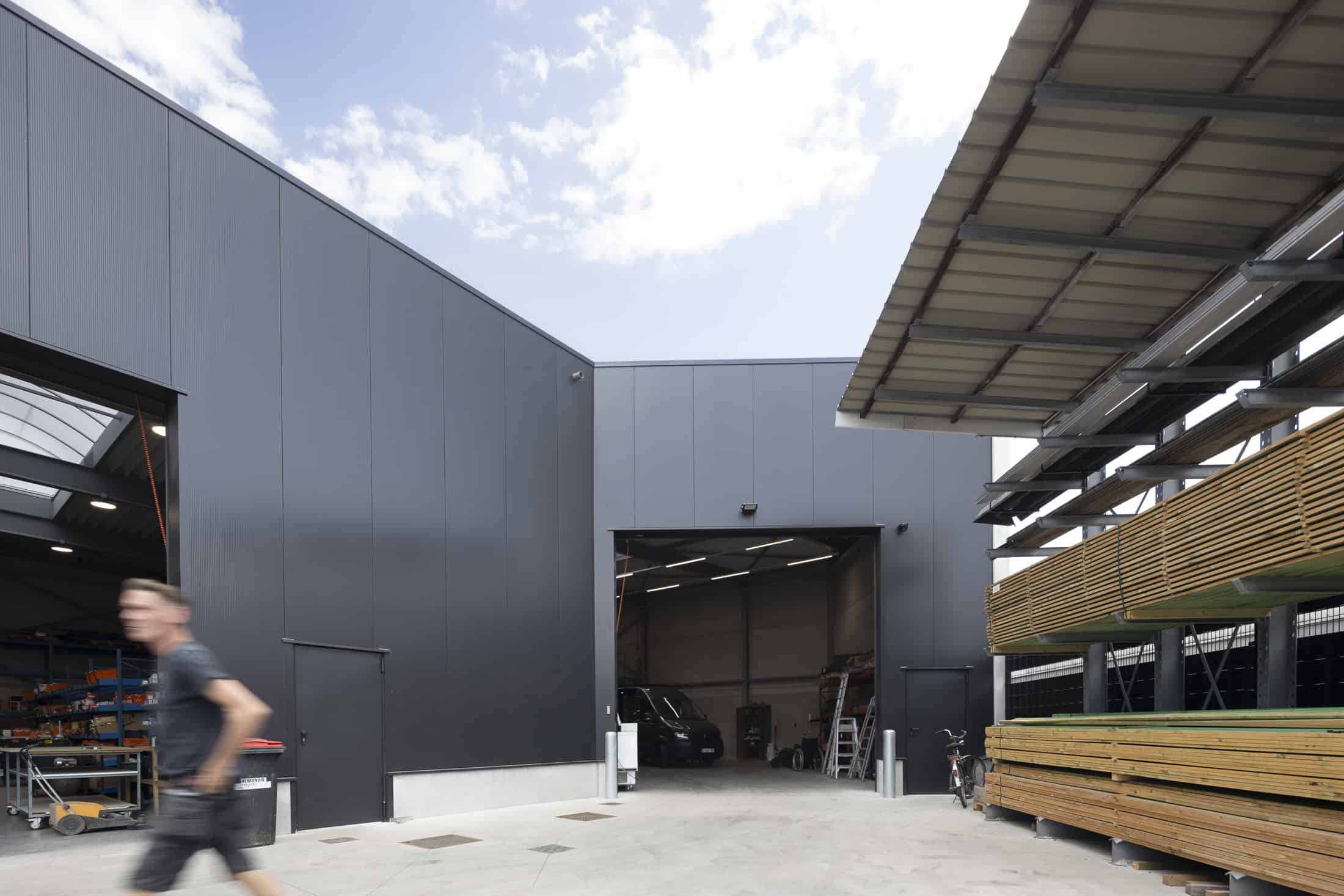 We hebben met trots een nieuw KMO-project in Kontich gerealiseerd voor Dakwerken Van Elshocht. Het gebouw onderscheidt zich door zijn strakke gevel in RAL7021, die een moderne en robuuste indruk achterlaat.